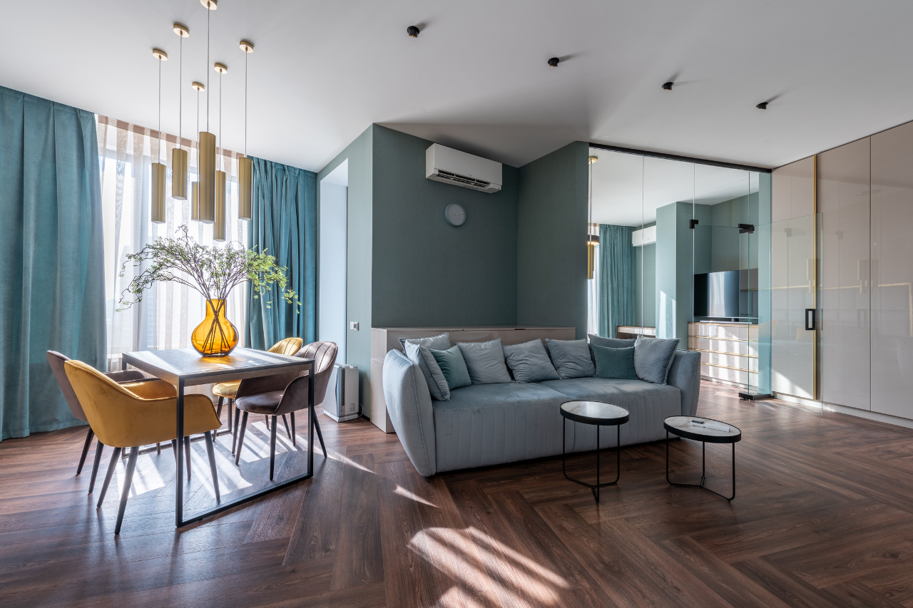 Oak Veneer Sideboard – Elegant Marble & Brass Design