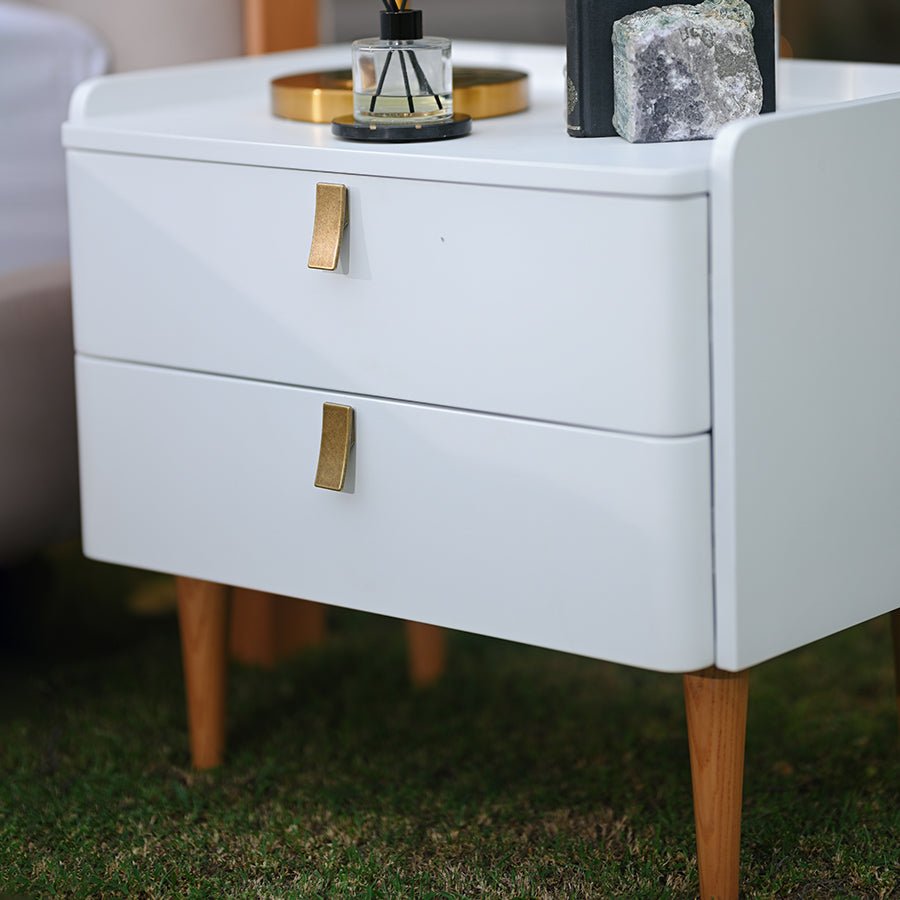Add a touch of elegance to any room with the Chic White Side Table, a perfect blend of style and functionality. Crafted from durable MDF with a smooth deco white finish, this table features striking brass legs and handles that exude sophistication. The double drawers provide convenient storage for essentials, making it an ideal accent for bedrooms, living rooms, or home offices.