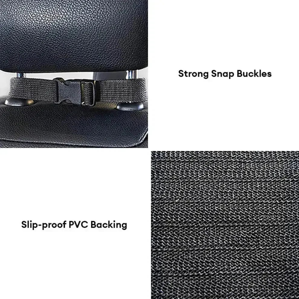 • Secure, stay-put install: headrest straps, seat anchors, and non-slip backing reduce sliding.