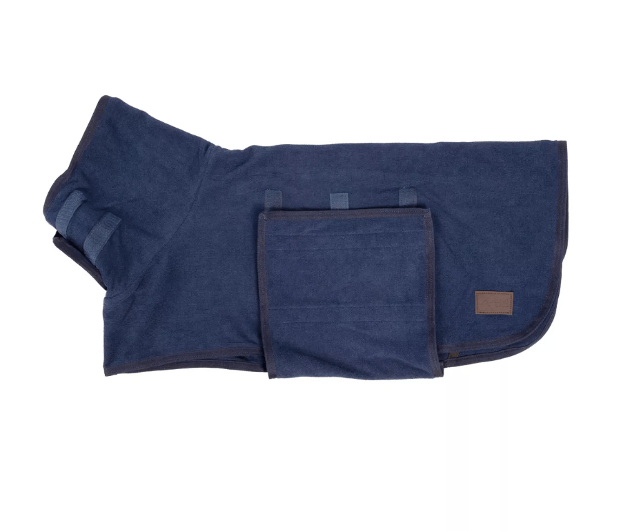 Keep your pup cosy and speed up dry time with this microfibre dog drying robe. The quick-dry, super-absorbent fabric pulls moisture from the coat, while adjustable straps keep the robe securely in place. Machine-washable for easy care.