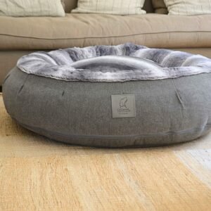 The Donut Dog Bed in luxury grey design is the ultimate calming retreat for dogs that love to curl up, burrow, and feel secure. With its raised bolster rim, this nest-style bed provides head and neck support while easing anxiety and promoting deeper rest.