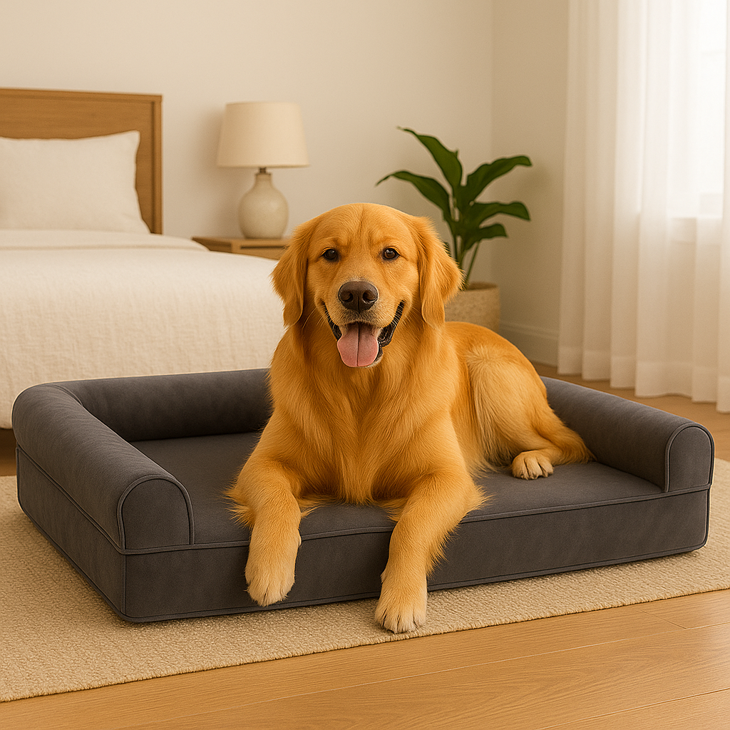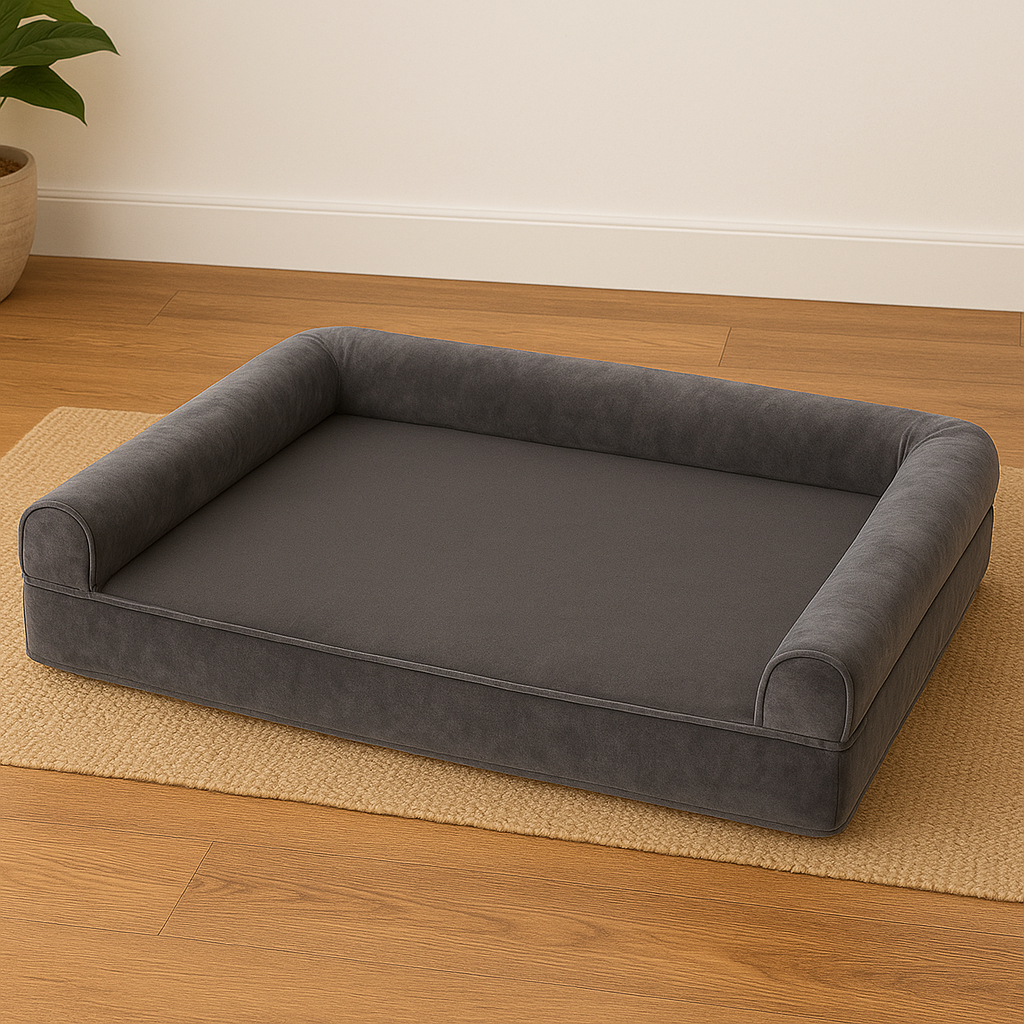 XL orthopedic dog bed memory-foam mattress for large dogs designed for restorative, joint-friendly sleep. A high-density memory-foam core helps reduce pressure on hips, elbows and spine, while the raised bolster edge offers a secure headrest for calmer naps.