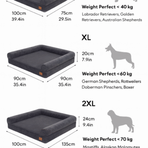 – 2XL: 135 x 100 x 24 cm (suitable for dogs up to 70kg)